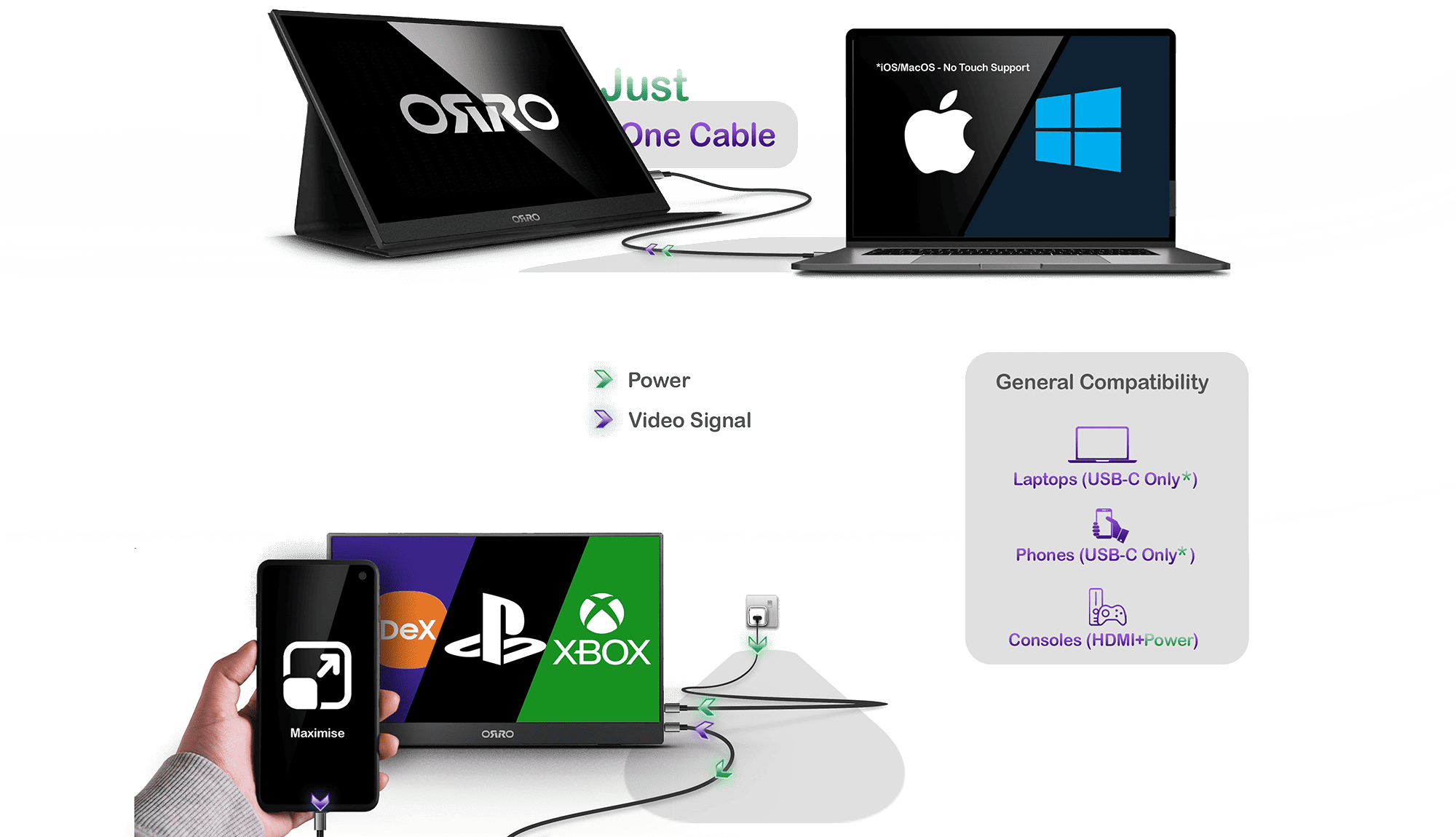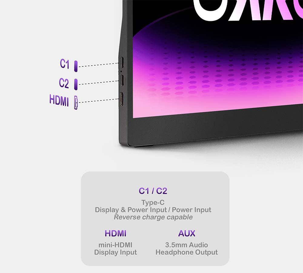 - Enjoy reverse trickle charging your device whilst you use your portable monitor.