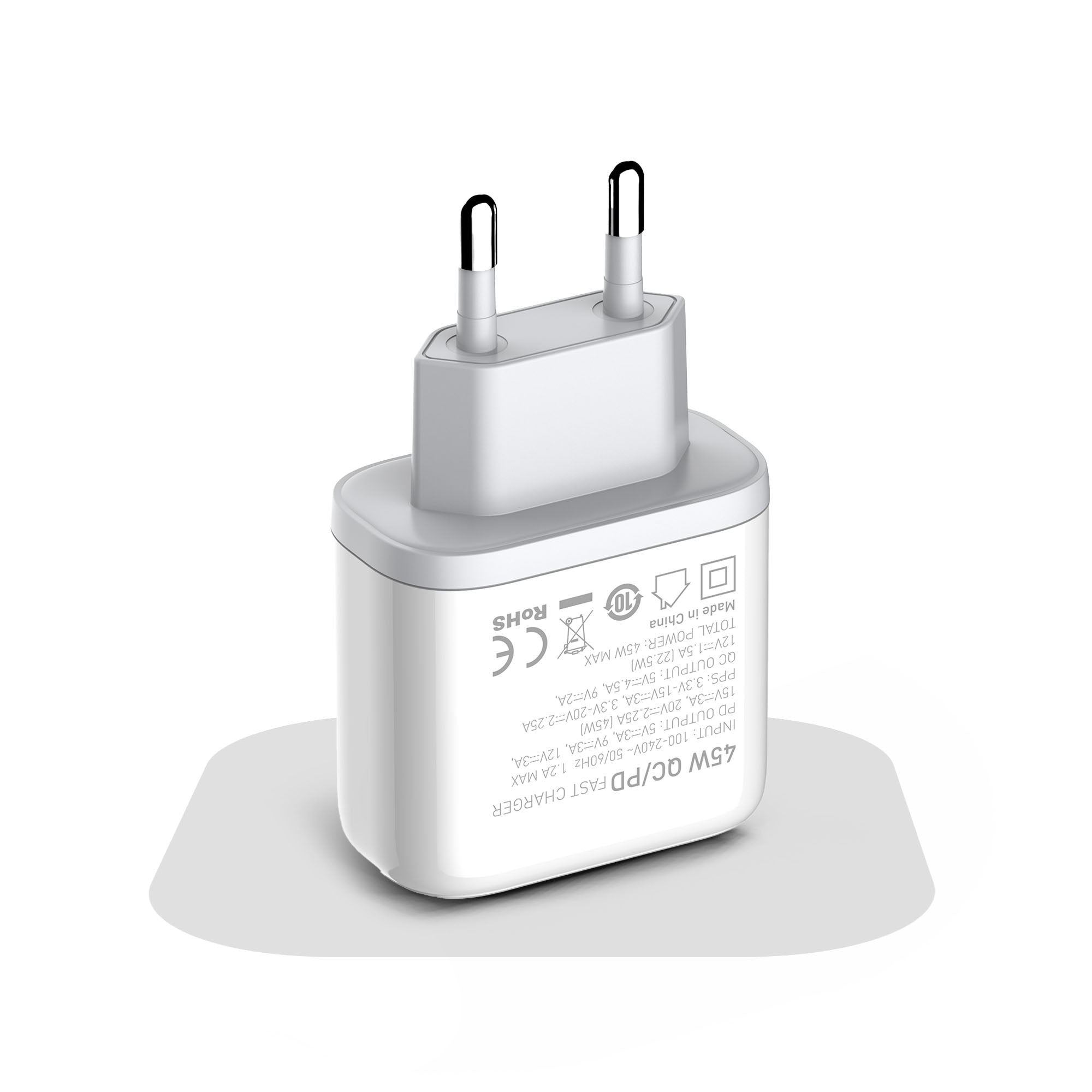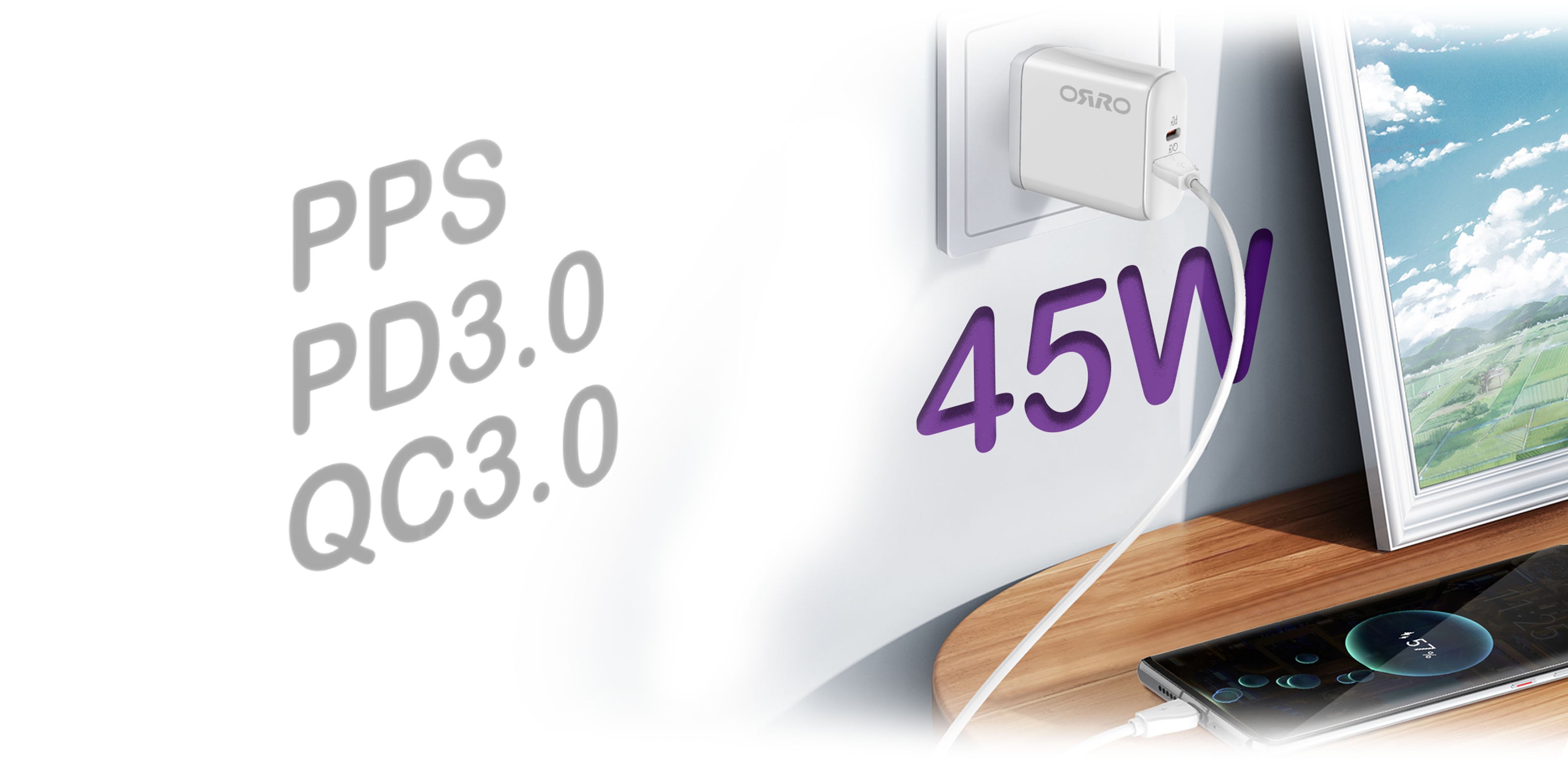 Experience the power with ORRO's Fast Charger. Engineered to support a variety of devices, it offers a formidable combination of a 45W of power with major charging protocols. You can easily charge most large brand devices up to a total of 45W when your device supports 15V/20V.