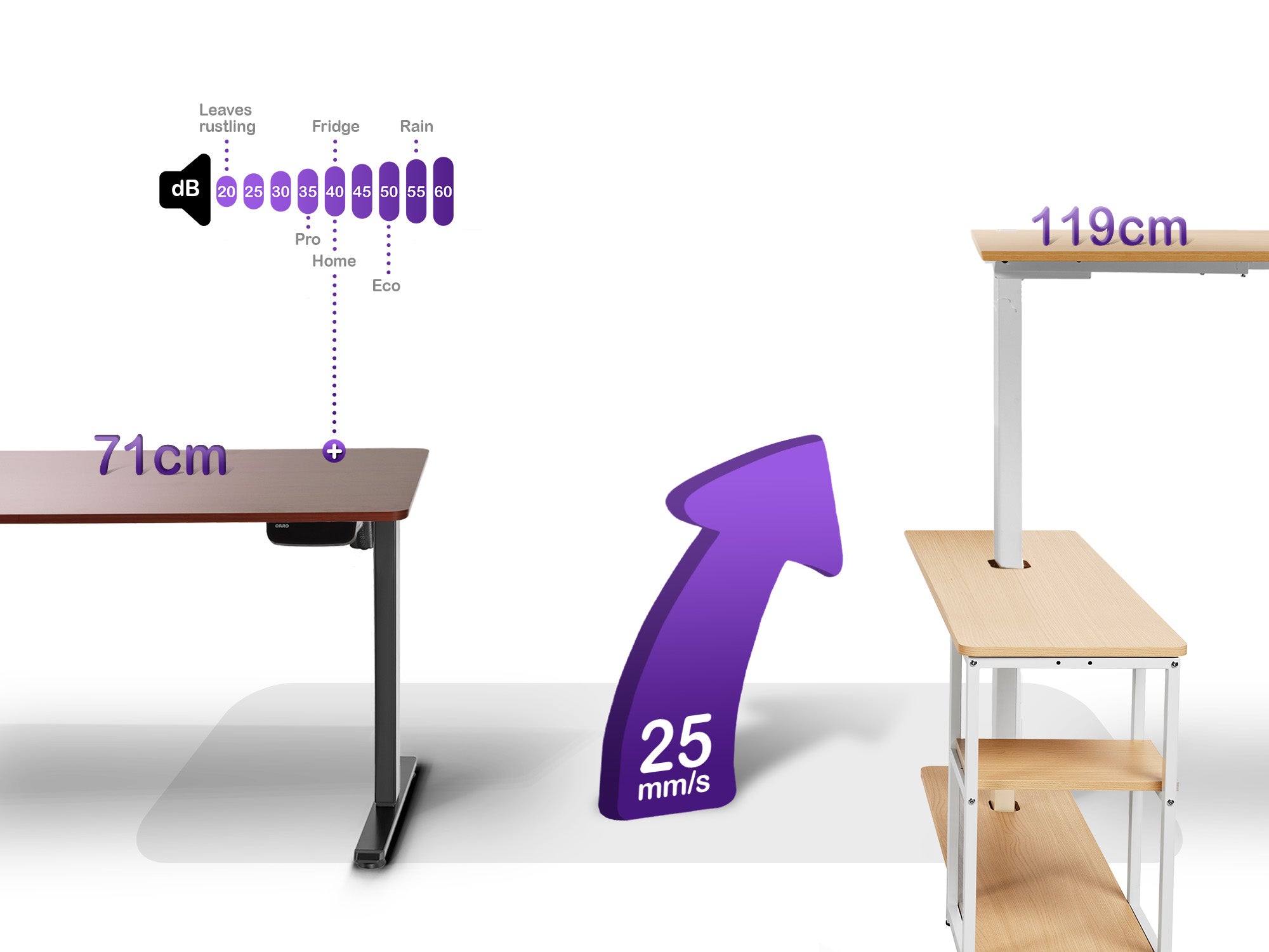 - Pro Model: Built for daily professional use with advanced customization, smart app control, height limits, obstacle detection, standing time tracking, child lock and more.